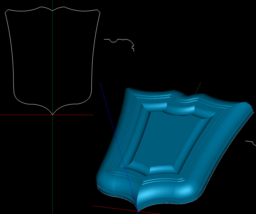 Mit MorphMuse können Sie in CamBam Oberflächengeometrien erstellen, indem Sie eine offene Kurve mit einem geschlossenen Umriss kombinieren. Es werden automatisch glatte Oberflächen generiert